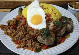 目玉焼きとターメリックライスの彩りも鮮やかで、ボリュームも満点!