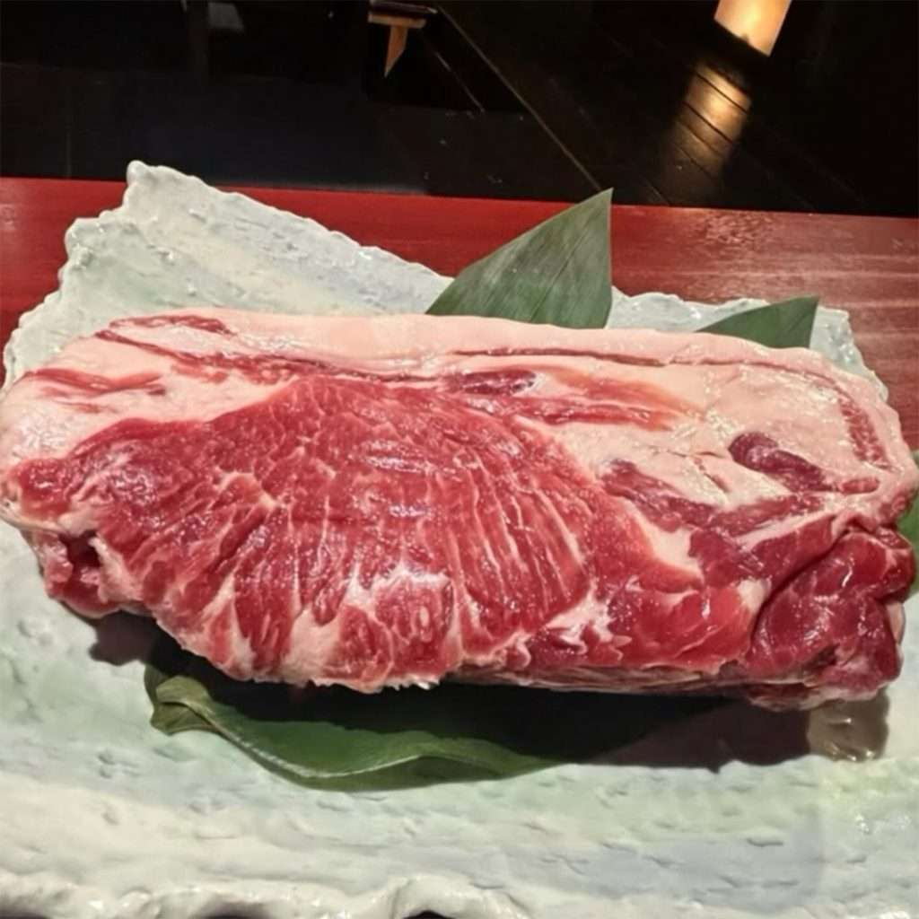 よく脂肪(霜降り)が入り込み、豚肉本来の濃厚なコクと旨みを最も堪能できる部位です。」